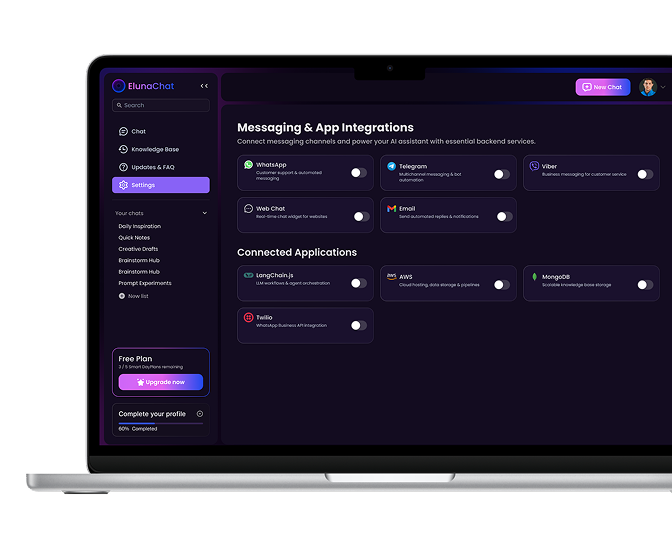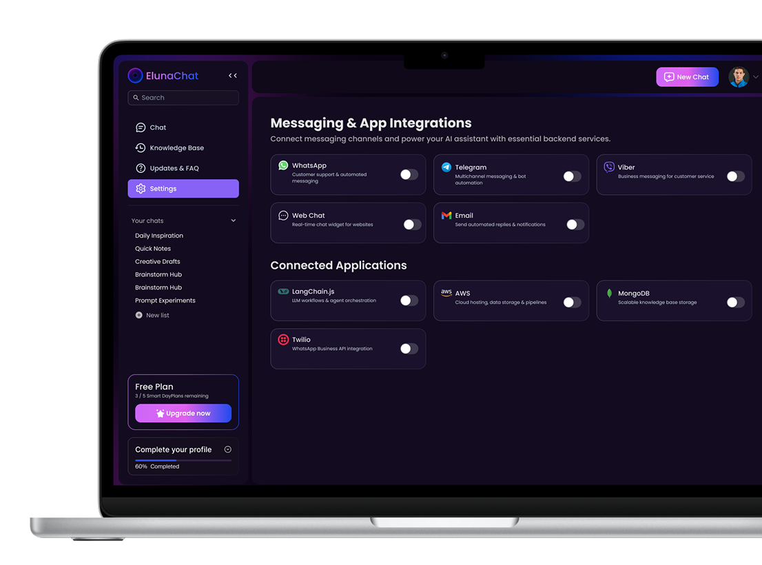 Real-time Integration: Deliver seamless chatbot service across multiple messaging platforms and channels.